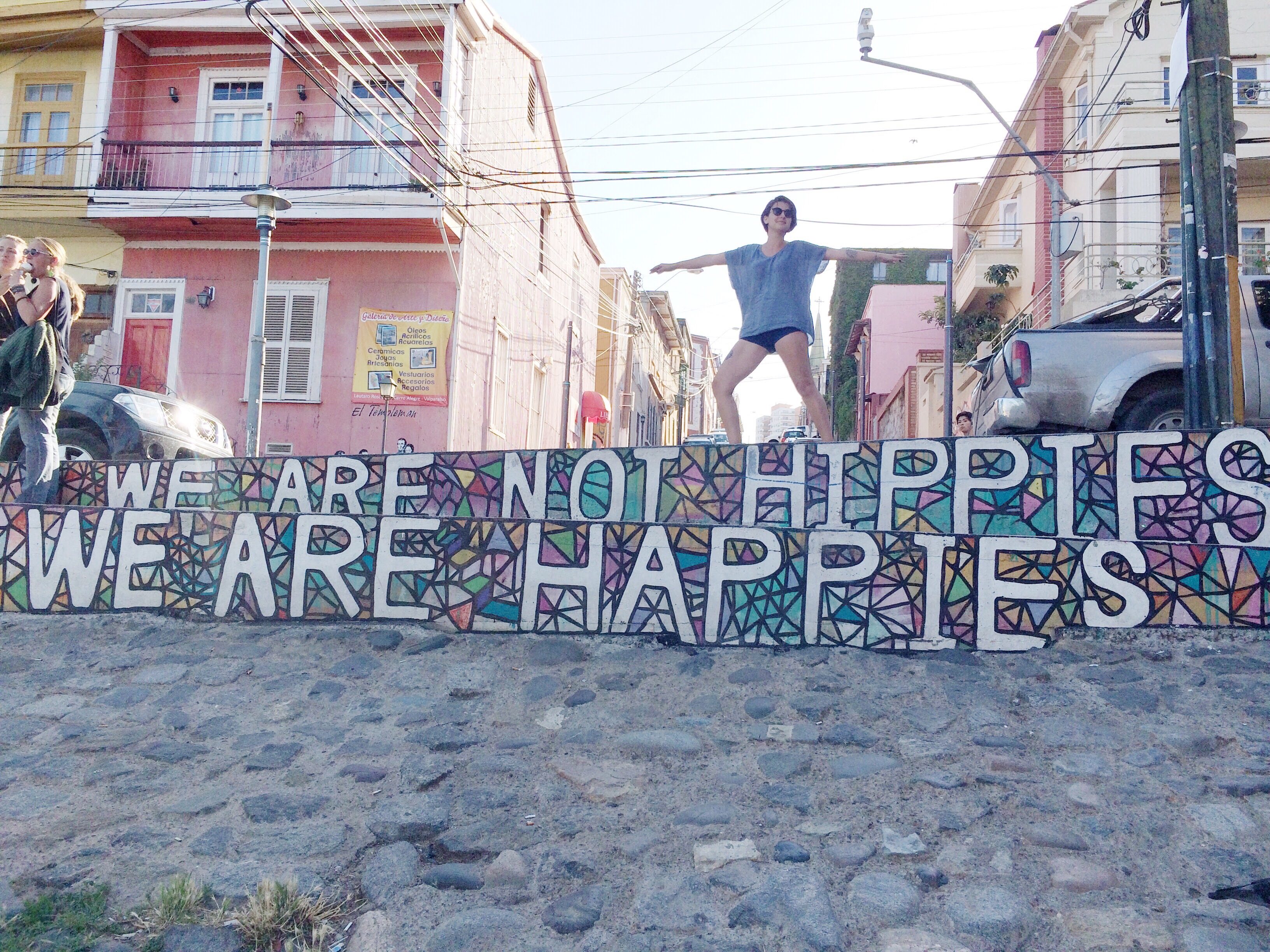 For my last day, I wanted to visit the famous sign that says, “We are not hippies. We are happies.” Do you know it? It’s really famous around here. And you might end up waiting a long time to get the perfect shot for your Instagram. That night, we decided to try another club, but it wasn’t any better. So, if you go to Valparaíso, just grab some drinks and hang out on the streets. You’ll definitely have more fun than in a club!