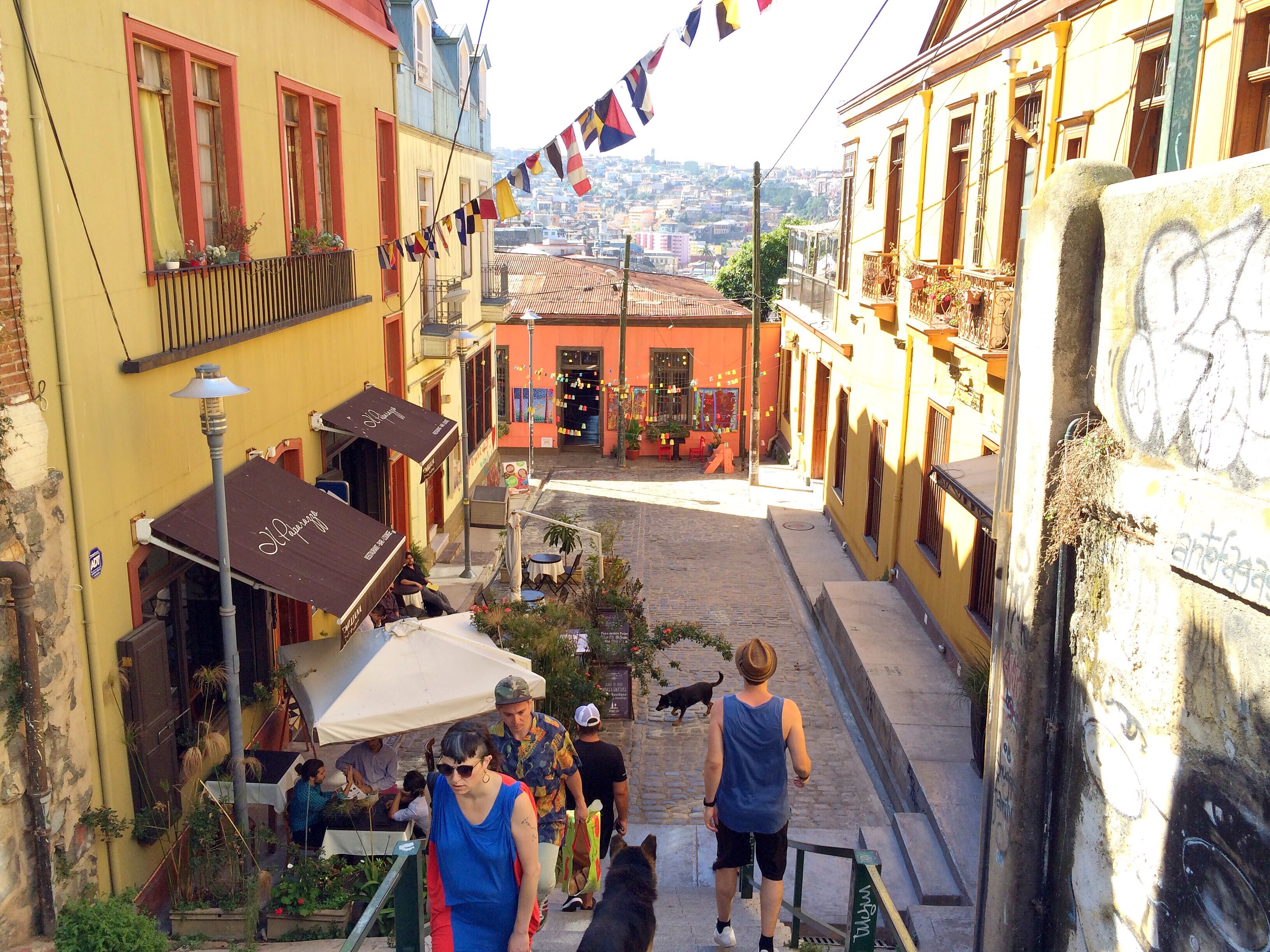 Santiago’dan Valparaíso’ya gitmek yaklaşık yarım saat sürdüğü için hızlıca şehre vardık ve hostelde Ali ile buluştuk. Eşyalarımızı odamıza bıraktık ve şehri keşfetmek için dışarı çıktık. Ali daha önce Valparaíso’yu gelmiş, bu yüzden bizi şehir merkezinde o gezdirdi.