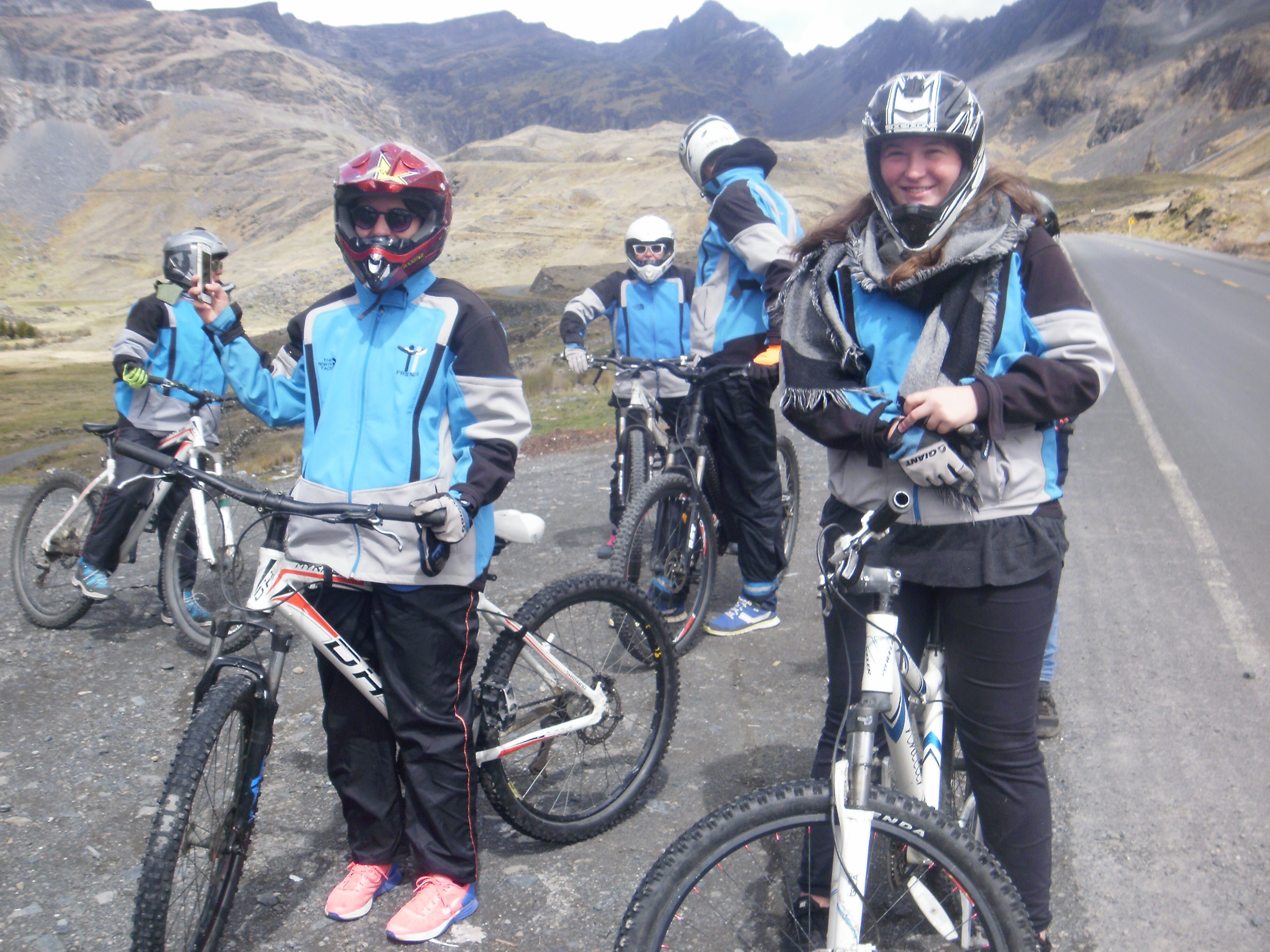 The tour started early in the morning. We met and went where it starts. As we started early, it was so cold in the mountains. We wore our biking clothes and grabbed our bikes. We ride until the beginning of Death Road for a smooth warm up. I was thinking: “This is easy!” But I should have waited to decide about it.