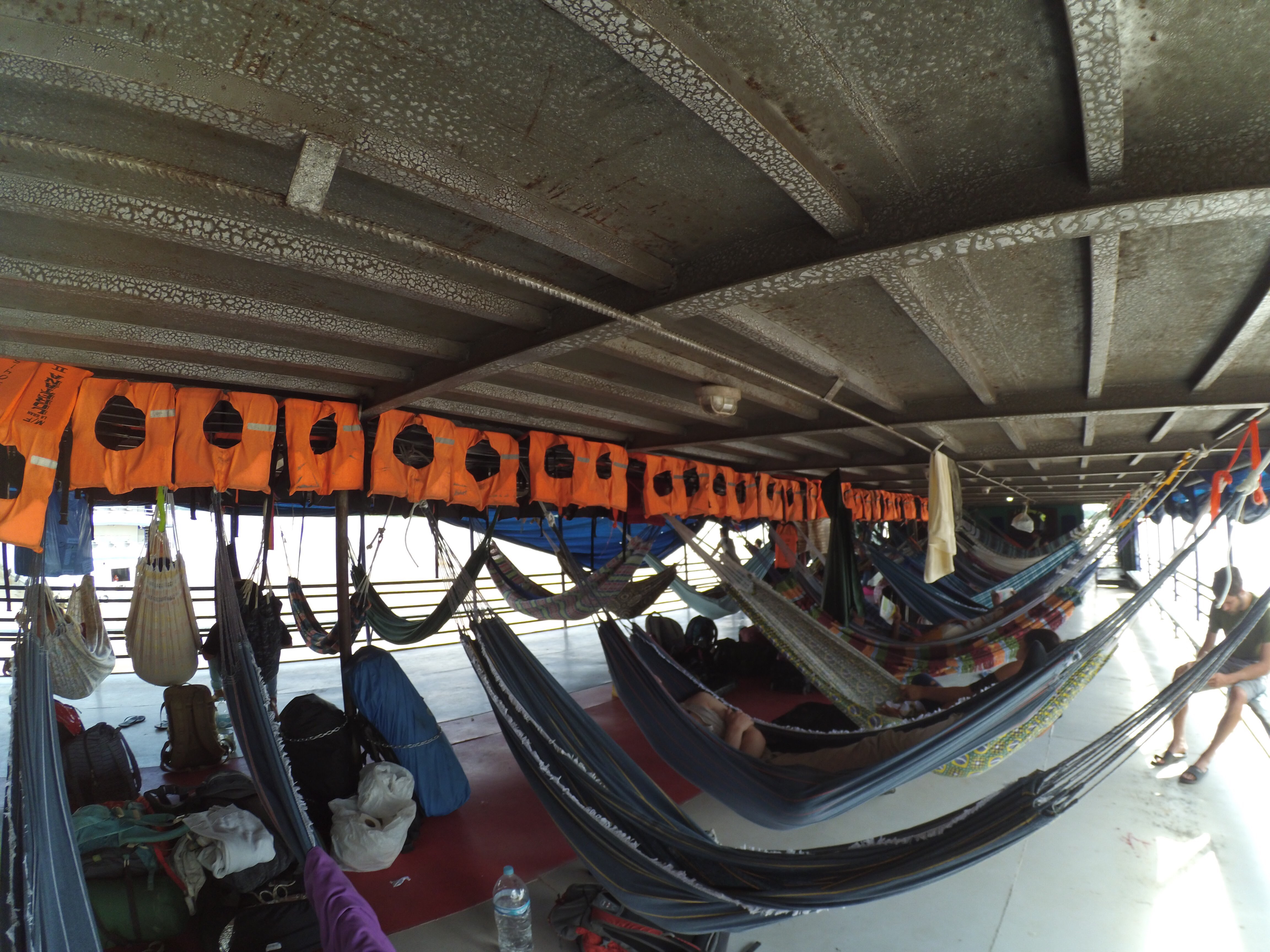 Limana vardığımızda şansımıza aynı gün saat 19:30’da Leticia’ya yola çıkan gemi bulduk. Bilet kişi başı 50 Sol. Kendi hamağınızı kendiniz getirmeniz lazım. Ama gemiden de almanız mümkün. Tabii ki her şeyde olduğu gibi hamak alırken de yapabildiğiniz kadar pazarlık yapın. Biz hamaklar için 27.5 Sol ödedik. Hamaklarımızı kurduk.