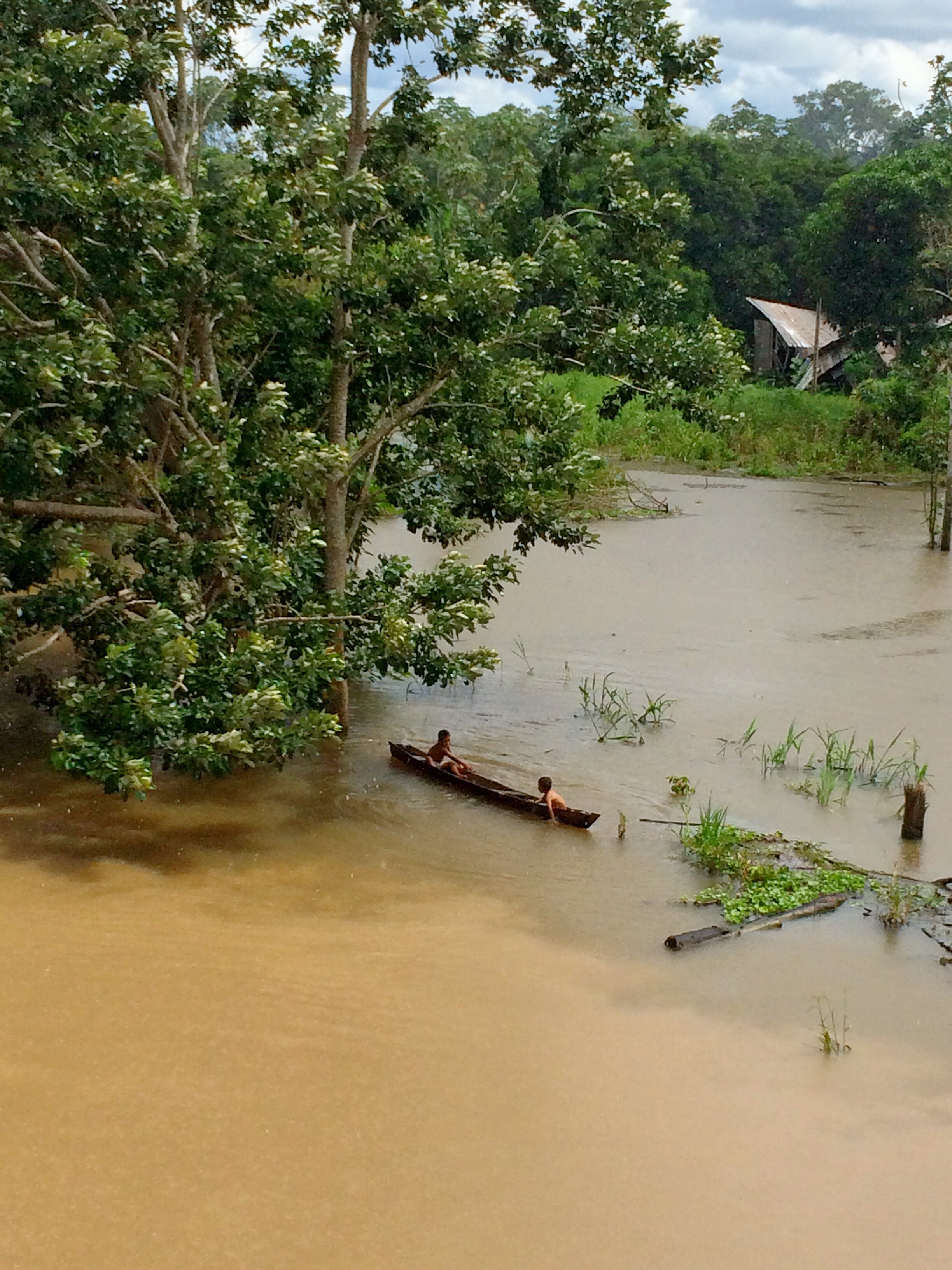 Hava gün boyu aşırı sıcaktı. Öğlen sıcaktan bayılıp hepimiz şekerleme yaptık. Ama çok sıcak olduğu için terlemekten uyandım bir saat sonra. Kaldığımız katın üstü teras. Doğal olarak güneş çıkınca direkt tepemizdeymiş gibi oluyor. O yüzden gün boyunca yemek yeme, terleme, terasa çıkıp serinlemeye çalışma, tekrar aşağı inme, biraz daha yemek yeme gibi bir döngüye girdik. Ama hamaklardan izlediğimiz manzara, uğradığımız tüm köyler çok güzel. Leticia’ya ise bayağı bir yaklaştık. Sanırım yarın sabah erkenden varacağız.